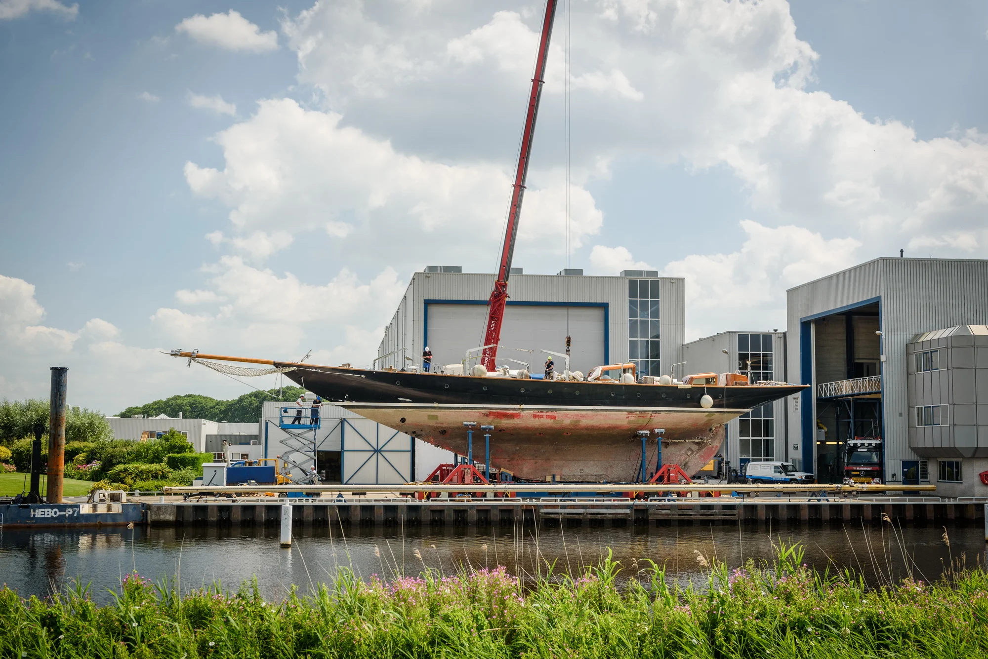 Vagrant arrived at the Royal Huisman facilities in Vollenhove where the yacht will be fully stripped. The rebuild will begin with the sandblasting and preservation of her 33m / 109ft over-a-hundred-years-old steel hull, after which a new deck and all necessary outfitting will be re-installed.