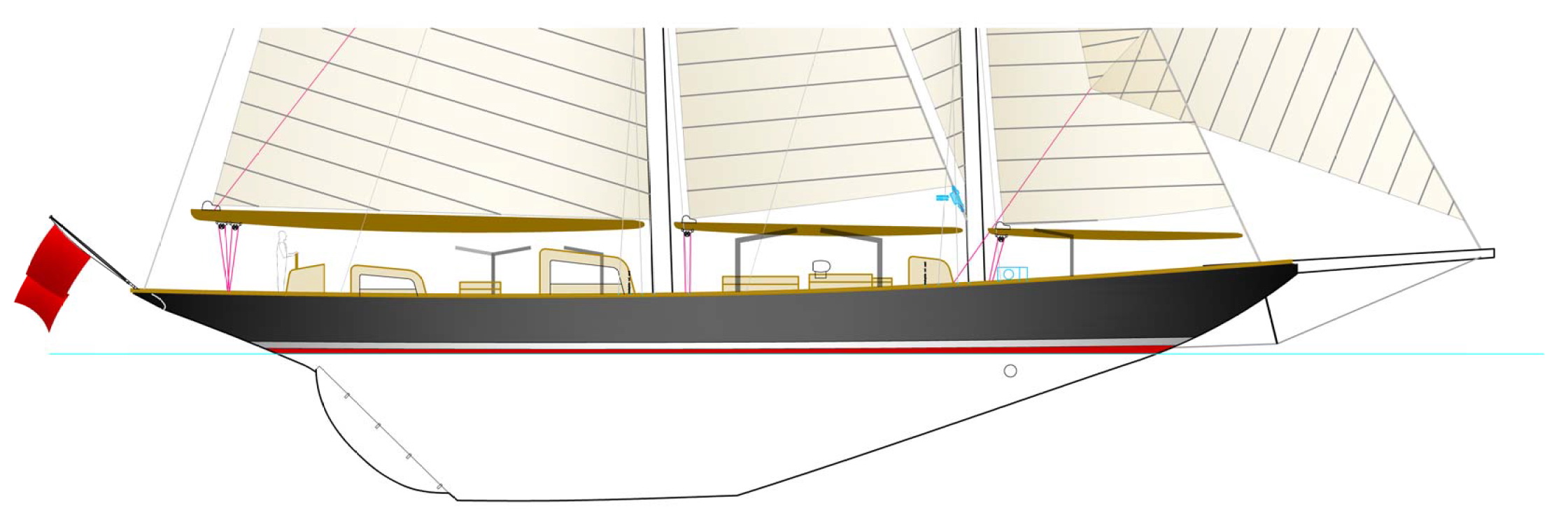 Dykstra Naval Architects and Rondal will provide the re-rigging of her schooner-rigged sail plan with yankee, staysail, main staysail and queen fisherman, while new Rondal aluminum masts will be constructed for the inside furling of the fisherman and mainsail.